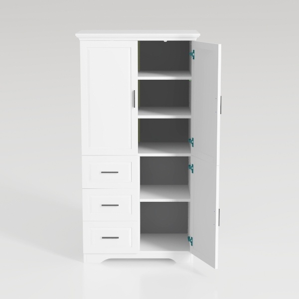 Kitchen Pantry Cabinet, 75" Tall Pantry Cabinet with Three Drawers, Freestanding Food Cupboard with Doors and Shelves, Metal Storage Cabinets for Dining, Living Room, White, Assembly Required