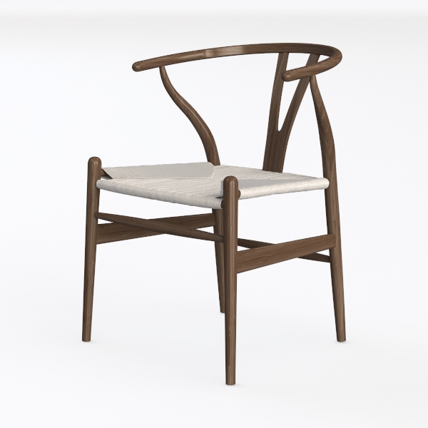 Wishbone Chair Natural Solid Wood Dining Chair/Hans Vegner Y Chair Rattan and Wood Accent Armrest Chairs (Ash Wood - Walnut)