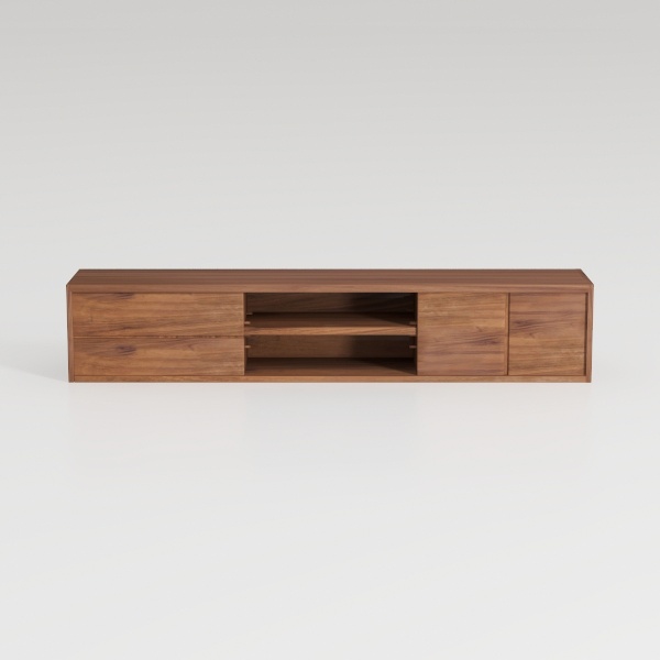 Rooted in a blend of natural material reverence and minimalist aesthetics, this wooden console features warm wooden grains, smooth and delicate to the touch, with soft luster and natural light-dark tones. Paired with light gray sofas and potted plants, it’s a standout in modern minimalist living rooms. Drawer storage and a central open shelf offer daily storage and space for speakers or decor, blending style and function seamlessly.