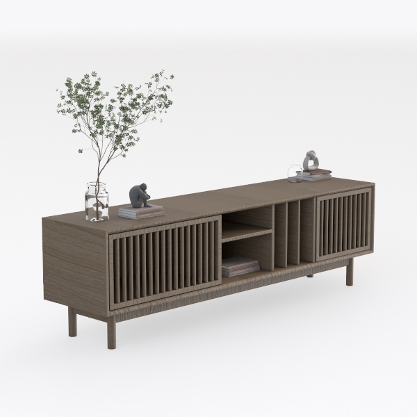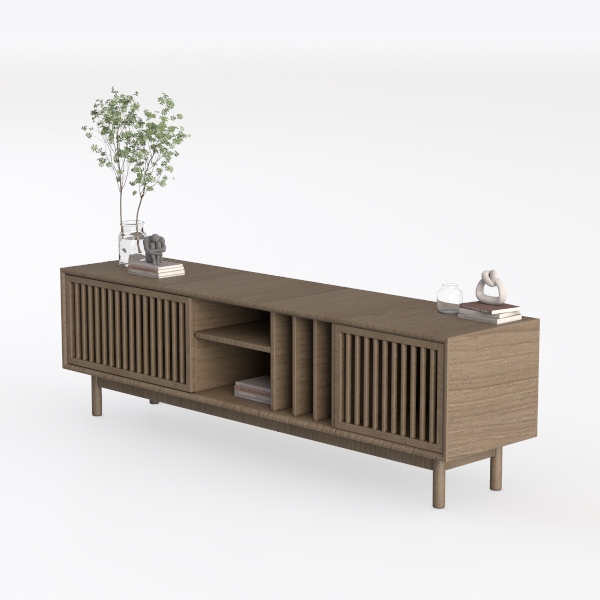 Crafted with natural wood and linear lattice design, inspired by minimalist Japanese aesthetics. Its warm, smooth surface and subtle wood grain offer tactile comfort, while vertical slats add soft visual texture. Ideal for modern or Scandinavian living rooms, pair with neutral sofas and potted greenery. Spacious closed compartments and open shelves provide ample storage for media and decor, balancing functionality and elegance.