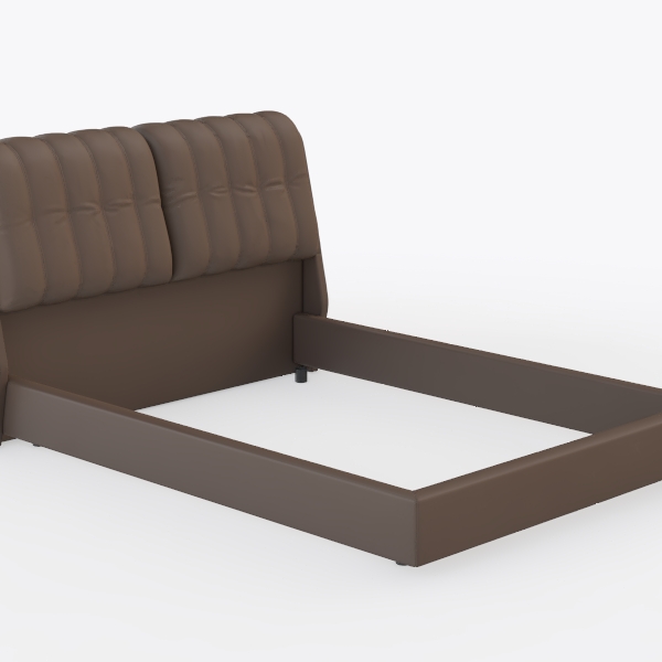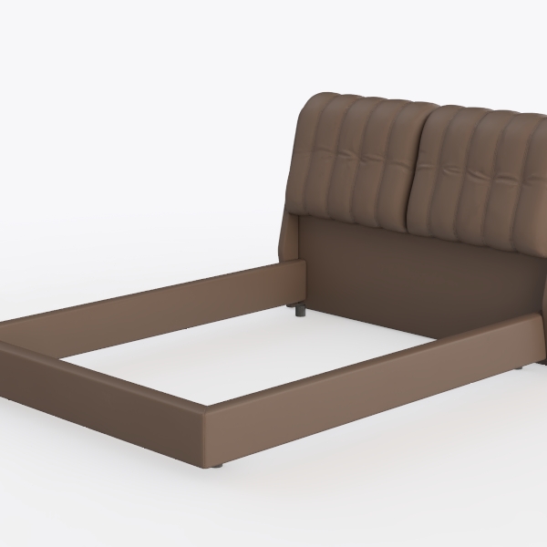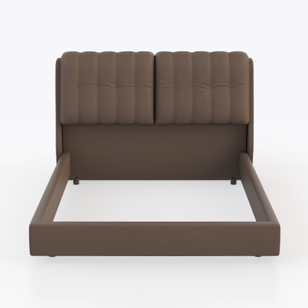 Inspired by organic curves and minimalist design, this bed features soft, smooth leather with subtle tufted details, creating a warm, grounding presence. Its sleek frame and rich brown hue make it ideal for a contemporary master bedroom, pairing seamlessly with neutral-toned linens and wooden nightstands. The plush headboard offers excellent back support, enhancing relaxation during reading or resting.