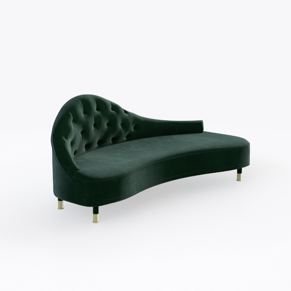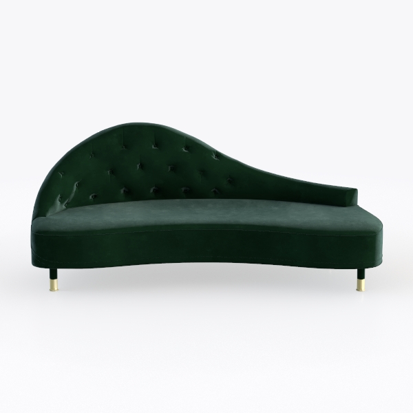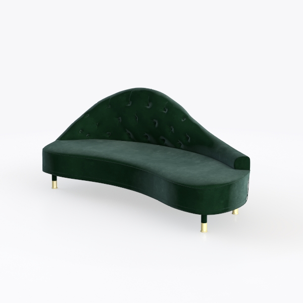 This elegant piece draws inspiration from mid-century modern design, blending timeless curves with contemporary sophistication. Its deep emerald upholstery, rendered in a lush velvet-like fabric, invites tactile indulgence—soft to the touch with a subtle sheen that catches light gently, creating depth without overwhelming the eye. The sinuous silhouette, with its gently arcing back and extended seating area, embodies fluid movement, while intricate tufted detailing along the backrest adds refined texture, balancing simplicity with artisanal charm.