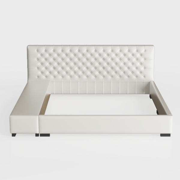 Inspired by timeless elegance merged with modern minimalism, its soft white leather features intricate diamond tufting, offering a smooth touch and structured visual appeal. Perfect for modern minimalist or contemporary luxury bedrooms, pair with sleek wooden nightstands and warm lighting. The spacious headboard provides excellent back support, while the streamlined frame saves floor space, enhancing room openness.