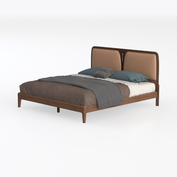 Designed with organic curves and warm materials, this bed blends natural serenity and mid-century charm. The soft leather headboard offers gentle support, while the textured wood frame adds warmth and depth, creating a cozy, sophisticated look. Ideal for modern minimalist or Scandinavian bedrooms, pair with a sleek nightstand, small plant, and warm lighting. Sturdy frame ensures stability, contoured headboard supports relaxation.