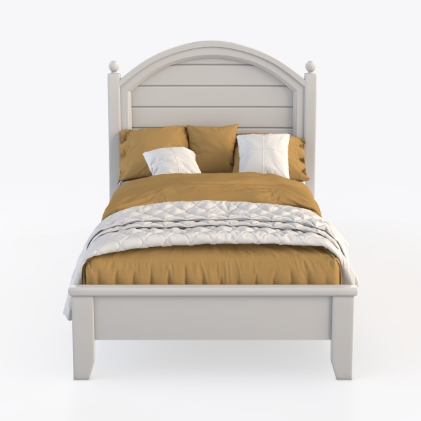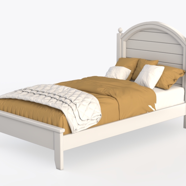Inspired by classic architectural arches, this bed blends timeless elegance with warmth. The smooth white wood frame contrasts beautifully with plush mustard linen sheets, topped by a quilted white coverlet adding subtle texture. Clean lines and balanced proportions create a serene, inviting look, ideal for modern, coastal, or Scandinavian bedrooms. Sturdy construction ensures lasting support, pairing effortlessly with wooden accents and soft lighting for cozy, restful nights.