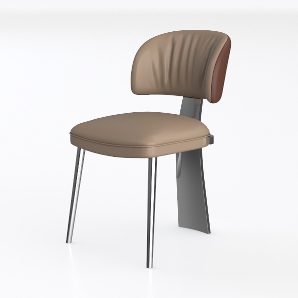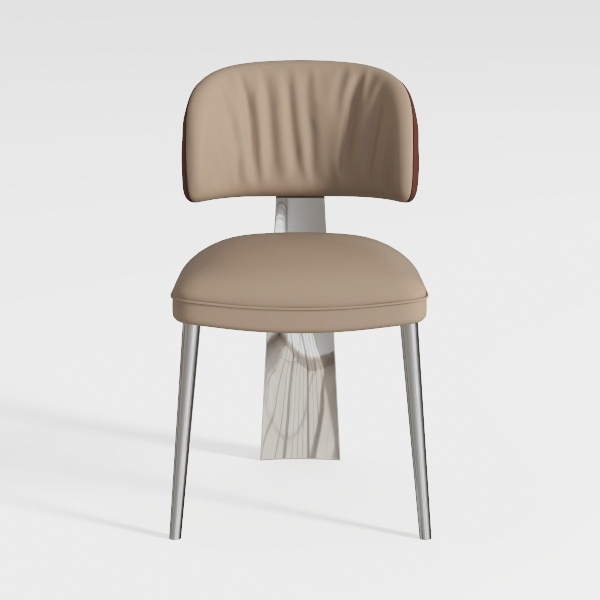 Inspired by organic softness and geometric precision, this chair blends a plush beige upholstery with sleek metal legs. Its curved backrest offers gentle support, while the smooth leather-like texture invites a soft touch. Clean lines and balanced proportions create a serene, sophisticated look, ideal for modern dining rooms or living spaces. Pair with wooden tables and soft-toned decor for warmth, and its sturdy frame ensures lasting comfort during meals or relaxation.