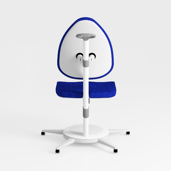 Inspired by ergonomic design, this chair merges comfort and modern style. Its soft blue upholstery offers a plush touch, while the sleek white frame with metal accents adds a light, airy look. Ideal for minimalist home offices, it pairs well with wooden desks and sleek pendant lights. Equipped with adjustable height and rolling casters, its contoured back and wide seat support long hours of focused work.