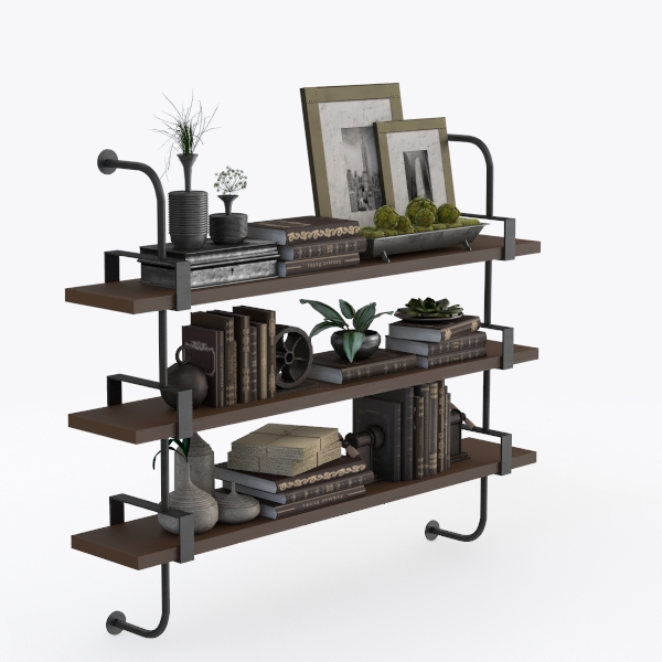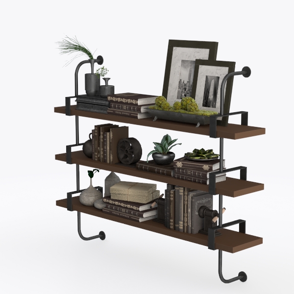 Helsin 3 Tier Industrial Pipe Shelf Rustic Wood