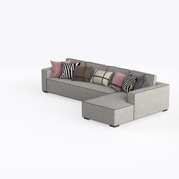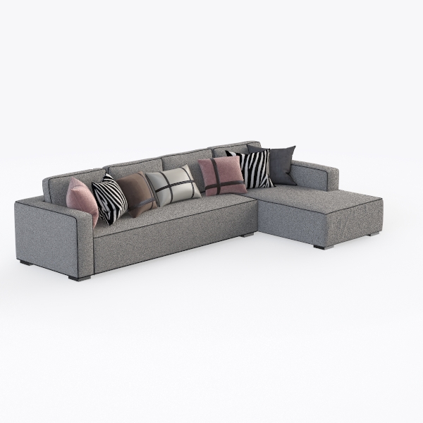 The design of this sofa is inspired by the modern desire for spaces that blend aesthetic appeal with everyday comfort, aiming to create a piece that feels both intentional and inviting. Crafted with a soft, textured fabric, its neutral gray hue serves as a versatile base, while the mix of throw pillows—featuring bold stripes, soft pastels, and subtle checks—adds layers of visual warmth and personality. Visually, the clean, uncluttered lines and generous L-shape exude a contemporary simplicity, making it a focal point that balances sophistication with approachability.
