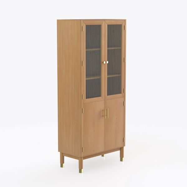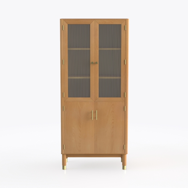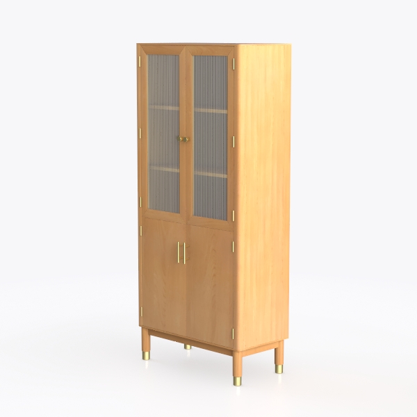 Designed to blend natural warmth with minimalist charm, this piece draws inspiration from organic wood grains and clean lines. Its smooth wooden surface radiates a soft, tactile feel, while clear glass doors and brass handles add subtle elegance. Perfect for a modern Scandinavian or contemporary study, it pairs beautifully with neutral sofas and potted greenery. With upper display shelves and lower storage, it balances functionality and aesthetic, making it a versatile addition to any home.