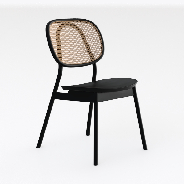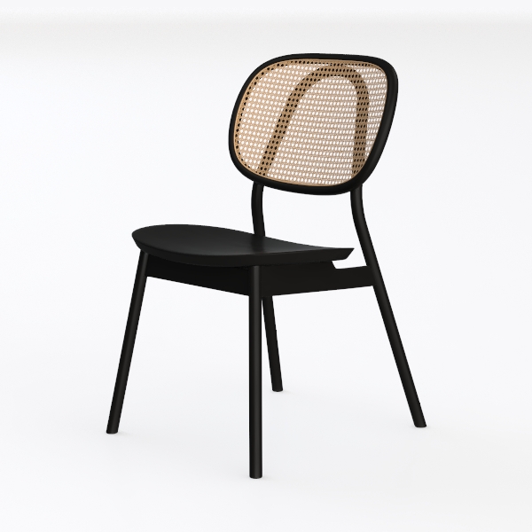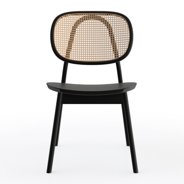 Inspired by mid-century minimalism, this chair blends natural warmth with sleek lines. A smooth black wooden frame offers a cool, solid touch, while the woven cane back adds airy texture, light and elegant. Pair with marble or wooden tables and brass lamps for a modern, cozy dining or living space. Its contoured seat and stable legs ensure all-day comfort, perfect for meals or gatherings.