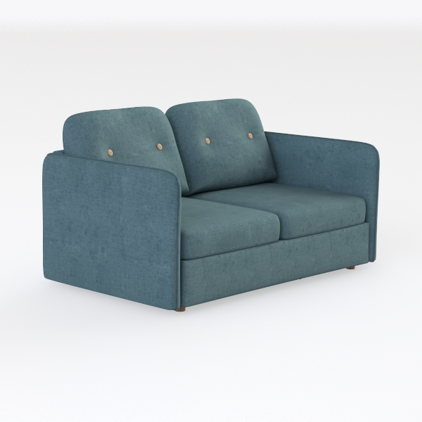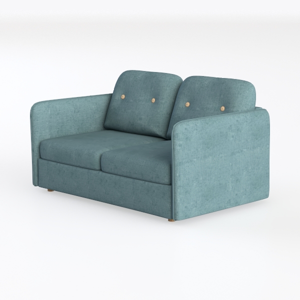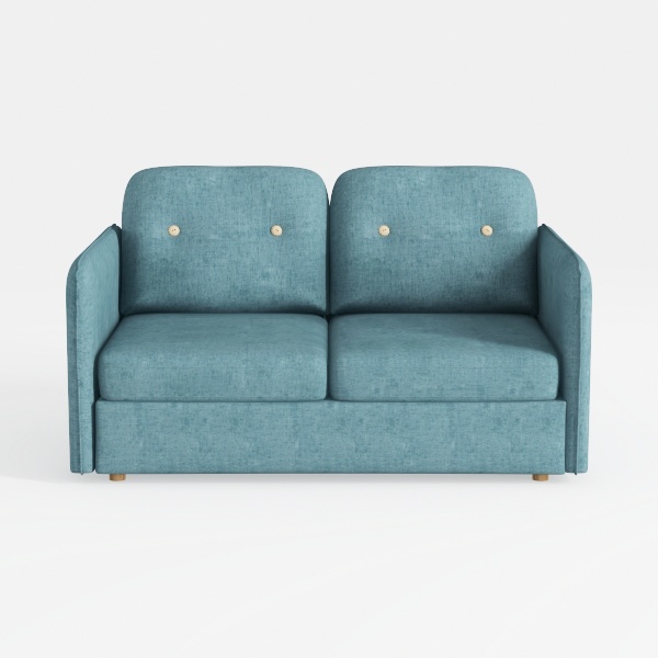 This elegant loveseat draws inspiration from the timeless allure of mid-century modern design, reimagined with a fresh, contemporary twist. Its soft, muted teal upholstery—woven with subtle texture—feels surprisingly substantial to the touch, offering a comforting, almost cloud-like seat that invites relaxation. The muted hue, leaning slightly toward sage, infuses any space with a calm, fresh energy, while the three small gold-tone button tufts on each backrest add a touch of understated sophistication, balancing simplicity with subtle detail.