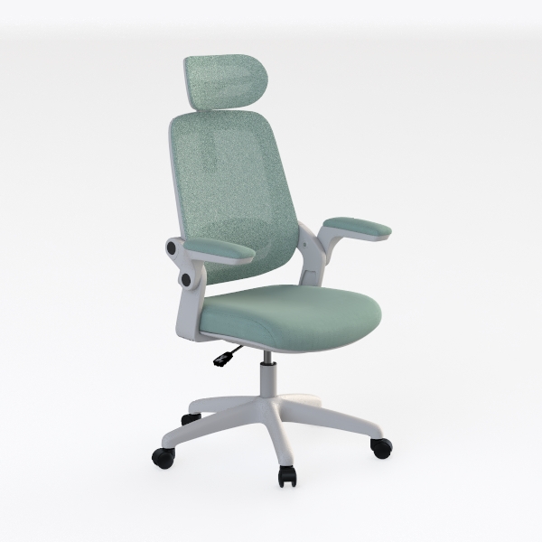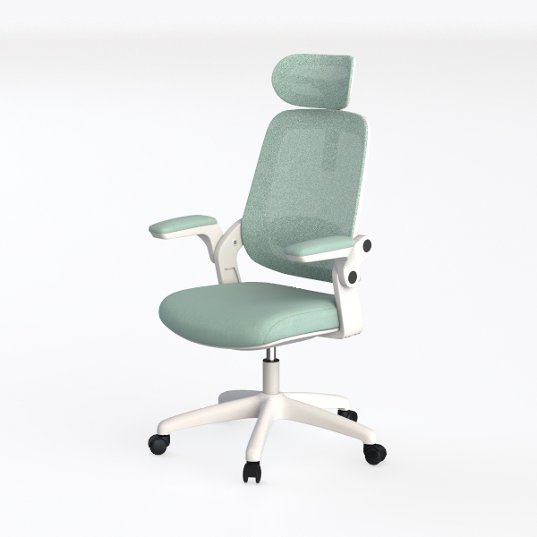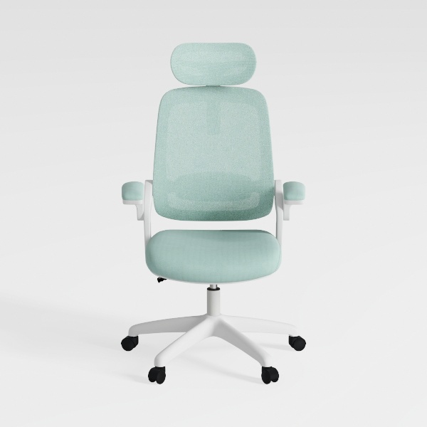 Inspired by fresh natural tones, this ergonomic chair features light mint mesh back/seat (breathable, soft) and a white metal base for sleek modernity. Lightweight mesh feels cool, airy; contoured headrest and adjustable height ensure all-day comfort. Perfect for minimalist home offices or cozy living rooms, pairing with wooden desks/soft textiles, and smooth-rolling wheels add easy mobility.