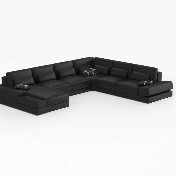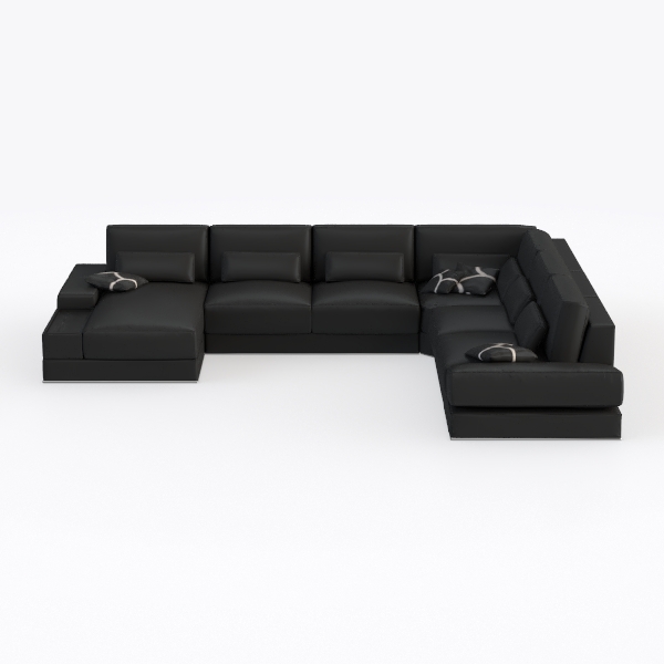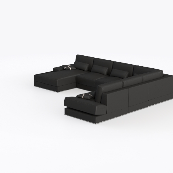 Designed to embody the harmony of modern minimalism and functional luxury, this sofa draws inspiration from the "less is more" philosophy, focusing on clean, uncluttered lines and versatile space optimization. Its sleek, matte black surface—crafted from a premium, soft-textured material—feels cool and细腻 (delicate) to the touch, with a subtle sheen that catches light gently, avoiding harsh glare while adding a touch of understated elegance. The L-shaped structure, with rounded armrests and a deep, expansive layout, creates an inviting, open presence, making it a natural focal point without overwhelming the room’s balance.