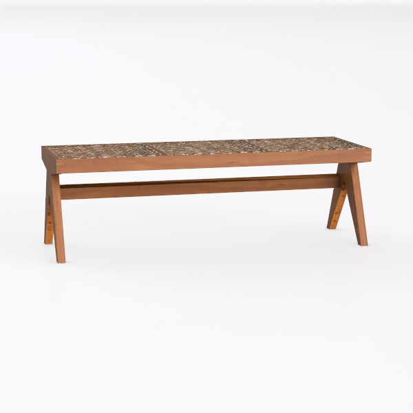 Inspired by mid-century Scandinavian minimalism, this wooden bench blends natural warmth with artistic detail. The smooth oak frame contrasts beautifully with its mosaic top, boasting earthy, light-catching patterns. Ideal for a modern living room or entryway, it pairs with metal accents and soft textiles. Sturdy X-shaped legs ensure stability, while the balanced design offers ample seating, merging style and function seamlessly.