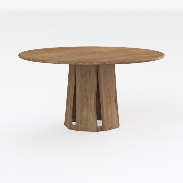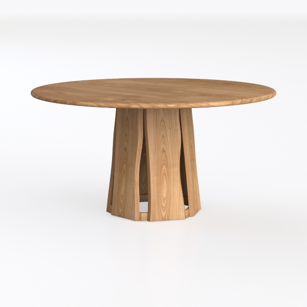 Inspired by organic forms, it blends natural wood grain with geometric simplicity. Its smooth, light oak surface reveals rich, warm wood grain, while curved, tapering legs add subtle movement, balancing warmth and elegance. Perfect for Scandinavian-inspired dining or minimalist living, it pairs beautifully with linen sofas and potted greenery. A generous circular tabletop offers ample space for meals, with sturdy legs ensuring stability and an airy presence.