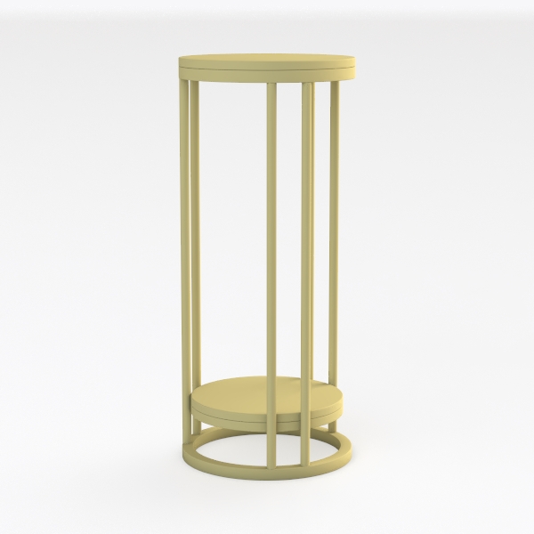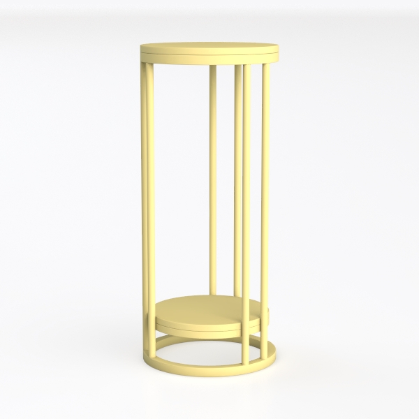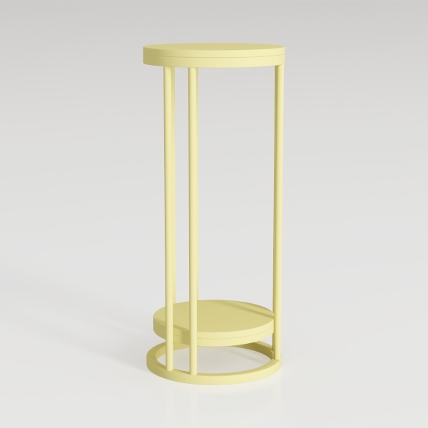 Designed with organic minimalism, this elegant side table features two circular tops and slender, smooth metal legs. The soft, matte yellow finish offers a warm, tactile contrast to the cool metal, creating a light yet sturdy presence. Perfect for modern living rooms or bedrooms, it pairs beautifully with wooden coffee tables or glass vases, and the double-tiered design provides ample space for small decor or daily essentials, blending style and practicality seamlessly.