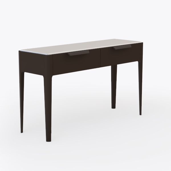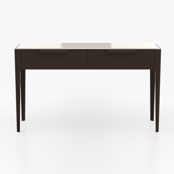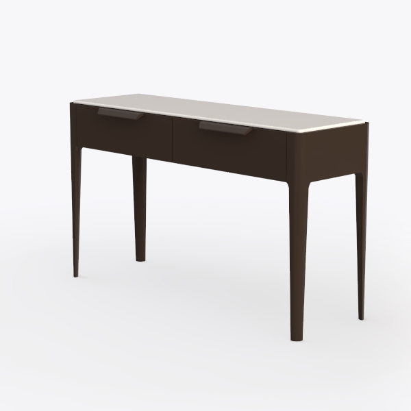 Inspired by geometric precision and understated elegance, this piece blends function with aesthetics. Its smooth, matte surface contrasts with sleek, dark legs—cool to the touch, solid yet lightweight, creating a balanced look. Ideal for a modern home office or minimalist bedroom, it pairs with marble accents and soft linen. Spacious drawers offer hidden storage, making it a design statement and practical daily companion.
