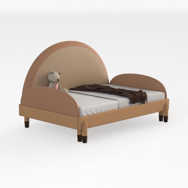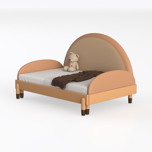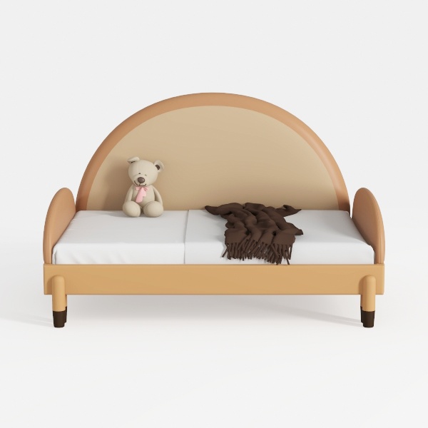 Inspired by soft cloud contours and gentle moonlit nights, this kids' bed features a warm, matte wood-like texture wrapping around a curved headboard, offering a smooth, comforting touch. Clean white bedding contrasts softly, enhancing the gentle, inviting vibe. Perfect for a cozy kids' bedroom, blending Scandi-nordic simplicity with playful charm—pair with pastel curtains and soft plush rugs. Rounded edges ensure safety, while the sloped frame allows easy access, ideal for little ones to climb in and out independently.