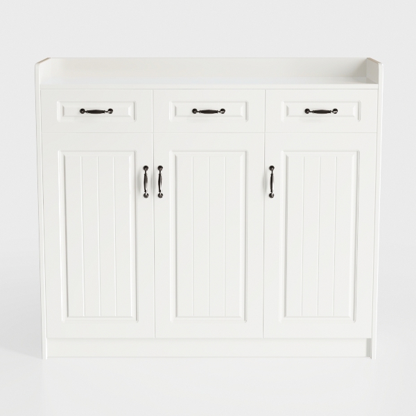 Rooted in timeless Scandinavian minimalism, this cabinet blends simplicity with practicality. Its smooth, matte white surface feels cool yet warm to the touch, vertical slat doors adding subtle texture. Crisp lines and ample storage—two drawers, three doors—brighten any space, ideal for a modern living room or dining area. Pair with wooden floors and potted greenery; sleek black handles elevate the look, keeping clutter hidden for a clean, inviting home.
