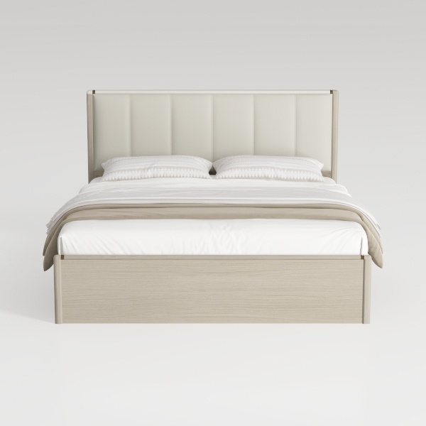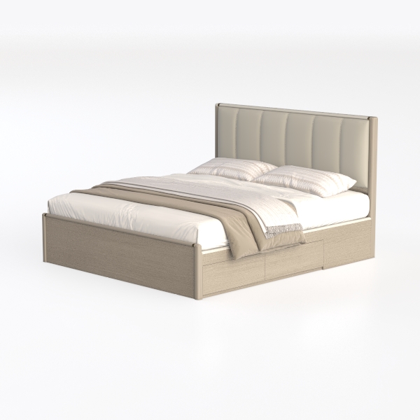 Inspired by Scandinavian minimalism, this bed merges natural textures with clean lines. The soft, textured upholstery on the headboard contrasts gently with the warm, smooth wood of the frame, creating a calm, inviting vibe. Perfect for a serene modern or Scandinavian bedroom, paired with linen bedding and a wooden nightstand. Spacious under-bed storage drawers add practicality without cluttering the space.
