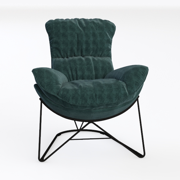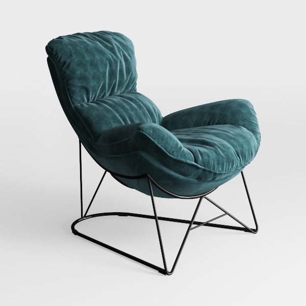 Designed with organic fluidity, this armchair merges modern minimalism with cozy warmth. Its plush teal upholstery feels soft to the touch, while sleek black metal legs add industrial elegance. Ideal for a contemporary living room, it pairs beautifully with marble side tables and geometric rugs, enhancing a chic, relaxed vibe. The curved back and deep seat cradle the body, ensuring long-lasting comfort for unwinding.
