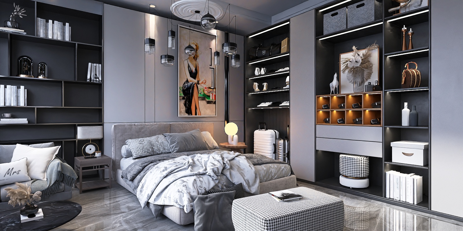 Inspired by minimalist design, this modular unit features sleek, matte surfaces with subtle texture contrasts, creating a clean, uncluttered aesthetic. Its blend of open shelving for curated decor and closed cabinets for hidden storage maximizes space efficiency, ideal for a modern minimalist living room or home office, complementing neutral tones and geometric accents.
