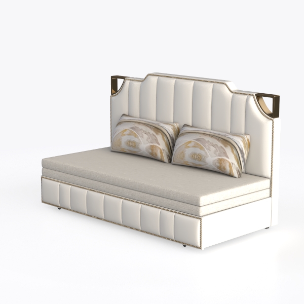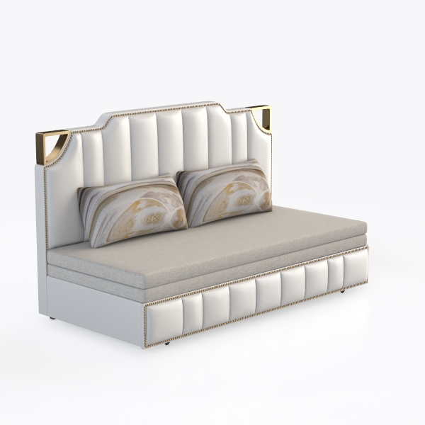 Blending mid-century modern grace with contemporary minimalism, this sofa draws inspiration from the clean, uncluttered silhouettes of classic lounge furniture, reimagined with a focus on understated luxury. Its soft, cream upholstery feels surprisingly plush to the touch—light yet substantial, it wraps the body in gentle support, while the tufted backrest and seat, stitched with fine, evenly spaced lines, add subtle textural depth without overwhelming the eye. The edges are accented with thin, warm brass trim, a deliberate nod to timeless elegance, which contrasts beautifully with the sofa’s neutral base, catching light softly to enhance its sophisticated allure.