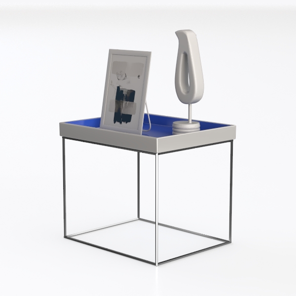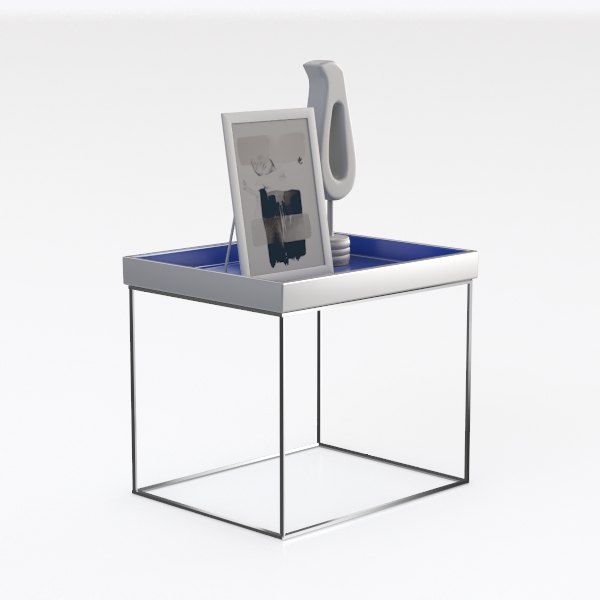 Inspired by spatial layering and color contrast, this side table blends minimalist lines with bold accents. Its smooth blue top contrasts with the sleek silver metal frame, while matte-white decor and a monochrome art print add softness, balancing cool and warm tones for a modern, airy feel. Perfect for modern living rooms or bedrooms, it pairs with minimalist sofas, elevating spaces with understated elegance. The sturdy metal base ensures stability, and the vibrant blue surface offers a practical spot for drinks, books, or decor, merging utility with aesthetic appeal.