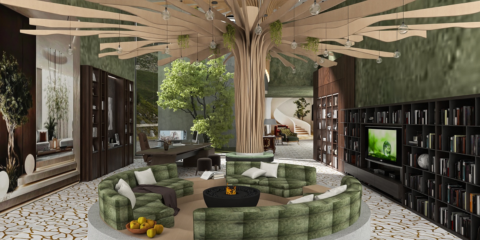 Inspired by balancing functional storage with elegant display, this piece merges clean lines and balanced proportions. Crafted with smooth, matte wood, its warm tones and structured edges create a calm, sophisticated atmosphere, while dense book arrangement adds tactile, layered depth. Ideal for a modern minimalist living room, it pairs with neutral sofas, soft lighting, and potted plants. Spacious shelves hold books/decor, central TV console blends storage and entertainment seamlessly.