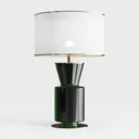 A 3D model of a Table Lamp, featuring white fabric lampshade, green and black glass base with golden accents and a modern minimalist aesthetic. It has high precision and low polygon count, suitable for indoor decoration and lighting in living rooms or bedrooms.