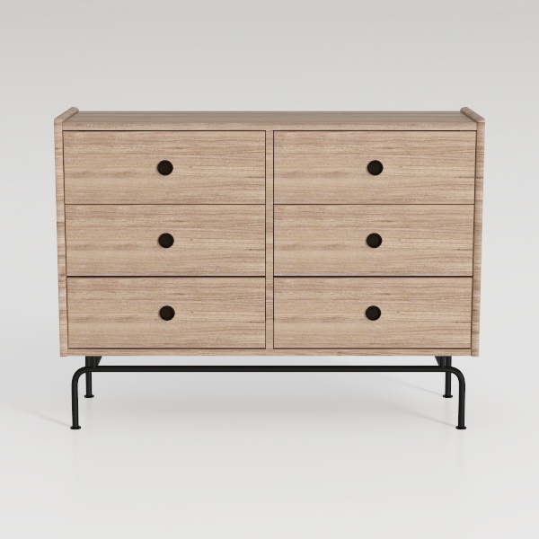 Bigbiglife Wood Dresser for Bedroom, 6 Drawer Dresser with Metal Handles, Mid Century Modern Dresser Double Chest of Drawer (Light Oak)