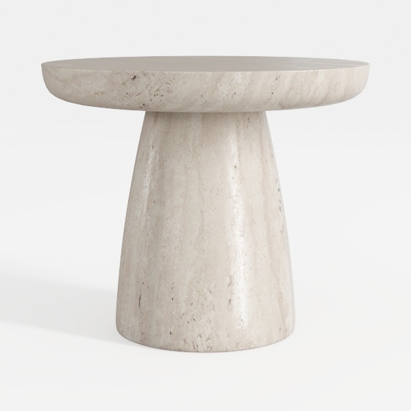 Inspired by natural stone formations, this table merges organic curves with modern minimalism. Its smooth, polished surface and subtle travertine-like texture create tactile and visual harmony, catching light to enhance space. Perfect for a modern living room or bedroom, it pairs beautifully with minimalist sofas and potted plants, while the sturdy, tapering base offers stable support for decor or daily essentials.