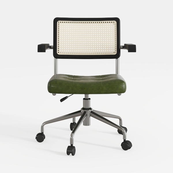 Zesthouse Mid Century Home Office Chair, Armless Swivel Desk Chair with Rattan Back & Adjustable Height, Upholstered Faux Leather, Green