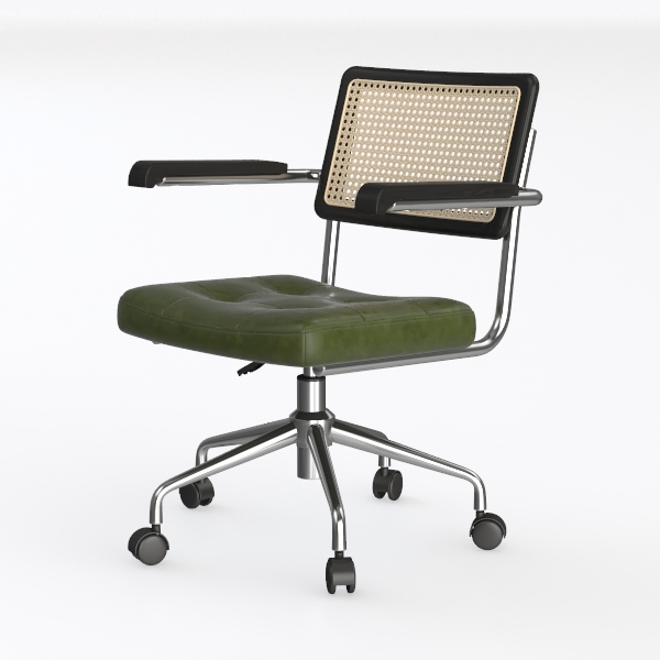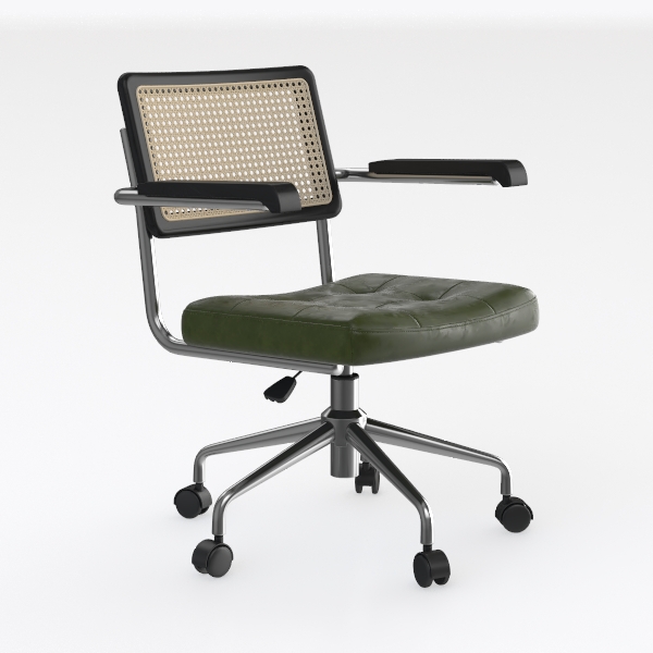 Inspired by mid-century modern ergonomics, this chair merges retro flair with practical design. Its buttery-soft green leather seat offers plush comfort, while the breathable white mesh back ensures airflow, contrasting beautifully with the sleek black frame and polished chrome base. Perfect for minimalist home offices or retro industrial studies, pairing seamlessly with wooden desks and warm-toned decor. Equipped with a swivel mechanism, adjustable height, and smooth-rolling casters, it balances style and functionality effortlessly.