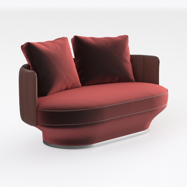 Drawing inspiration from organic, flowing forms—think smooth seashells or soft, rounded stones—the sofa embodies a sense of gentle embrace, merging sculptural elegance with everyday comfort. Its rich, burgundy upholstery feels sumptuously soft to the touch, with plush, cloud-like cushions that invite relaxation, while the smooth, slightly glossy armrests and base add a subtle sheen, balancing warmth with a touch of modern sophistication.