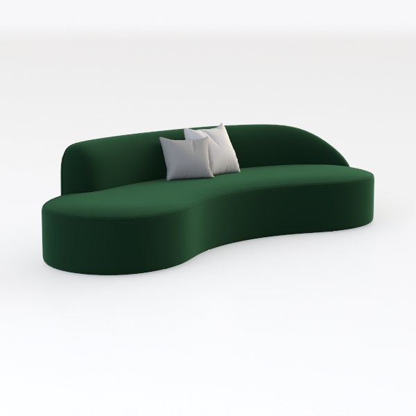Designed with organic curves inspired by the gentle flow of water or crescent moons, this sofa blends natural softness with modern minimalism. Its plush, textured fabric—soft to the touch and with a subtle sheen—wraps around the rounded silhouette, creating a warm, inviting surface that feels both luxurious and approachable. The rich emerald green hue adds depth, while the unbroken, flowing lines soften the room, making it feel open and harmonious, even in compact spaces.