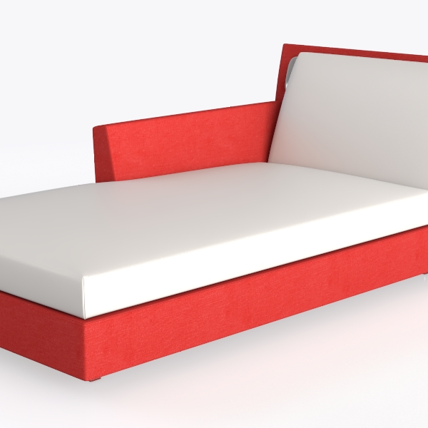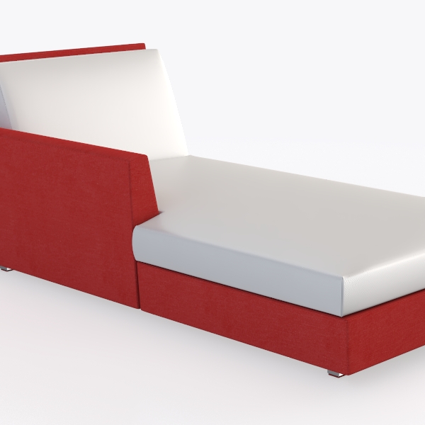 Crafted with inspiration from the harmony of minimalist design and bold color contrast, this bed frame blends a vibrant red upholstery with crisp white surfaces, creating a striking yet balanced focal point. The red fabric, with its subtle woven texture, feels soft and inviting to the touch, while the smooth white mattress top adds a serene, cloud-like visual contrast. The angular headboard, accented with a small metallic element, exudes modernity, keeping the overall look uncluttered and sophisticated.