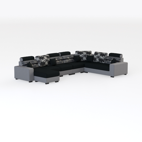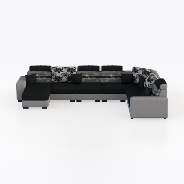 Designed to blend urban minimalism with artistic warmth, this modular sofa draws inspiration from the rhythm of modern city living—where functionality meets aesthetic intent. Its upholstery features a soft, textured fabric in muted grays and deep blacks, creating a tactile contrast that invites touch: cool to the eye yet surprisingly warm to the hand. The subtle floral-patterned cushions add a delicate layer of elegance, their soft weave complementing the clean, angular lines of the main body, while the interplay of matte and slight sheen elements infuses the piece with sophisticated depth.