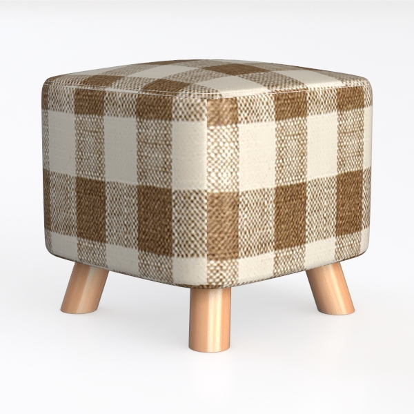 Drawing inspiration from classic check patterns, it blends rustic warmth with timeless charm. The soft, textured fabric features a cozy, earthy check pattern, creating a warm, inviting visual that feels both tactile and elegant. Perfect for a minimalist living room or a cozy bedroom, it pairs beautifully with wooden coffee tables and soft throw pillows. Sturdy wooden legs support a comfortably padded seat, ideal for extra seating or as a small side table.