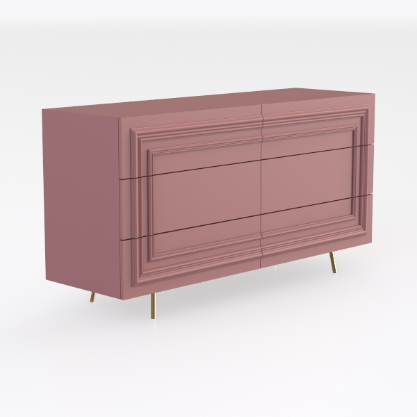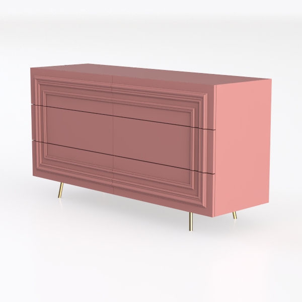 Inspired by a blend of retro elegance and contemporary simplicity, this piece features a soft matte pink surface with sleek gold legs, offering a warm, inviting tactile experience. Clean geometric lines enhance visual sophistication, making it ideal for Scandinavian or mid-century modern bedrooms, pairing beautifully with marble side tables and floral accents. Six smooth-gliding drawers provide ample storage, balancing style and practicality seamlessly.
