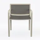 Drawing inspiration from the clean lines of Scandinavian minimalism and the organic texture of handwoven materials, this chair embodies a blend of simplicity and tactile warmth. The frame, crafted from a smooth, light-toned material, features gently curved armrests and tapering legs, creating a sense of airiness while ensuring stability. The seat and backrest, upholstered in a textured, gray woven fabric, add softness to the design—its subtle weave pattern catching light to reveal a play of shadows, enhancing depth without overwhelming the overall minimalism.