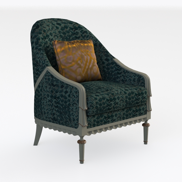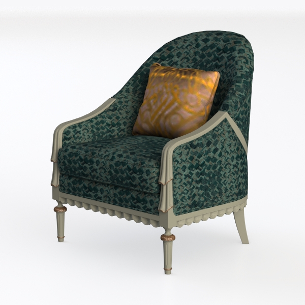 Inspired by mid-century modern charm, this armchair blends timeless elegance with comfort. The deep green geometric upholstery feels soft and inviting, while the textured gold pillow adds a warm, opulent touch. Ideal for a classic living room, it pairs with marble side tables and warm wooden floors, elevating the space with understated luxury. A generously sized seat and curved back cradle the body, offering style and all-day comfort.