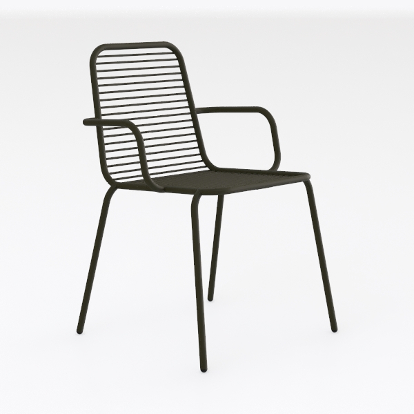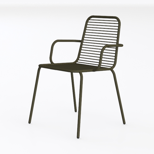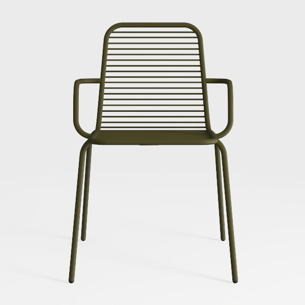 Inspired by geometric minimalism and earthy aesthetics, this chair merges sleek metalwork with a rich olive hue. Its smooth, matte surface feels cool to the touch, while the streamlined back and armrests create a light, uncluttered profile. Ideal for modern, Scandinavian, or minimalist living/dining spaces, pair it with warm wood furniture and soft ambient lighting. Slender, stable legs support comfort, and the contoured back ensures relaxed seating.