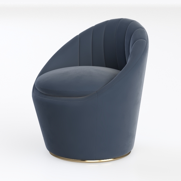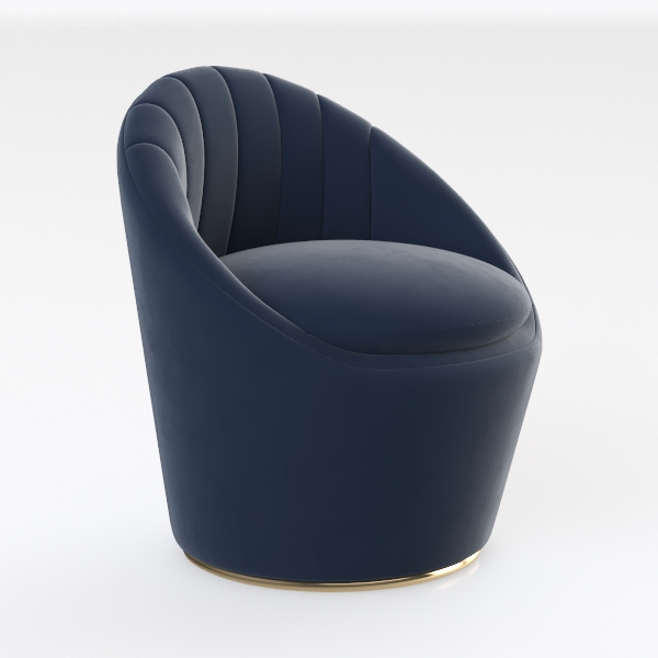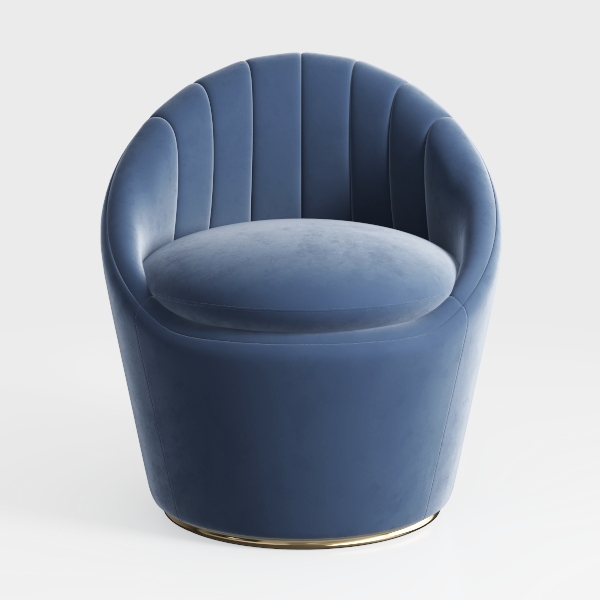 Inspired by seashell curves, this armchair merges organic softness with modern style. Its deep blue velvet upholstery feels luxuriously smooth, while the rounded silhouette wraps you in comfort. A gold base adds subtle elegance, ideal for modern-luxe living rooms with marble or metallic accents—spacious seat depth ensures ultimate relaxation.