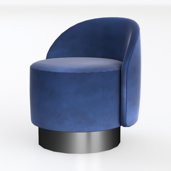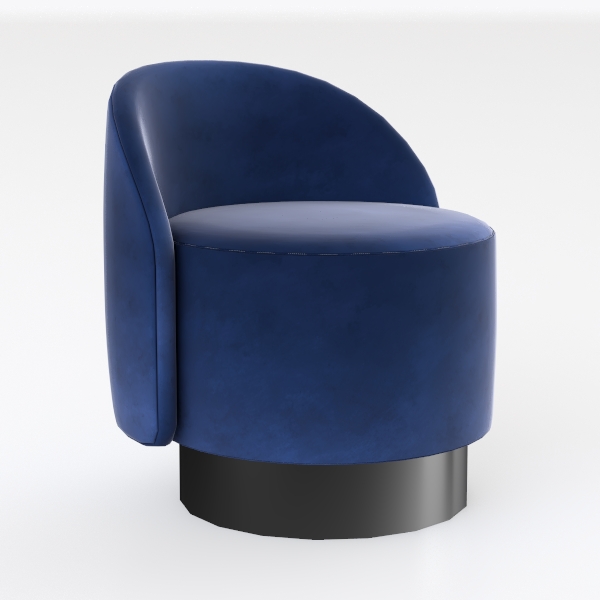The star feature is the deep, royal blue upholstery, which wraps around the rounded seat and back in a plush, velvety texture. Running a hand over its surface reveals a subtle sheen, hinting at a high-quality fabric that balances softness and durability; it feels like sinking into a cloud, yet maintains a structured presence. Visually, the chair’s full, rounded lines create a warm, inviting focal point, with the rich blue hue adding a touch of opulence that catches the eye without overwhelming the space.