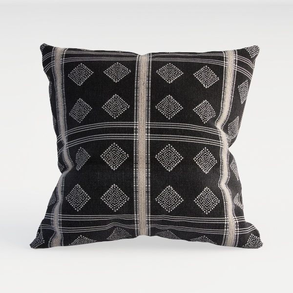 Crumbs Home Modern Farmhouse Fall Linen Indoor Outdoor Throw Pillow Cover Only, 20"x20" Water Repellent for Patio, Backyard, Couch, Black Neutral Embroidered Stripes