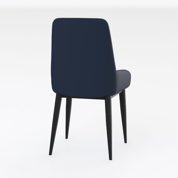 Inspired by Scandinavian minimalism, it merges clean lines with subtle harmony. Deep blue upholstery feels smooth; sleek black legs add modern elegance. Ideal for modern dining rooms/living areas, pairing with wooden tables and matte lighting. Contoured backrest and well-padded seat ensure comfort, perfect for daily use/entertaining.