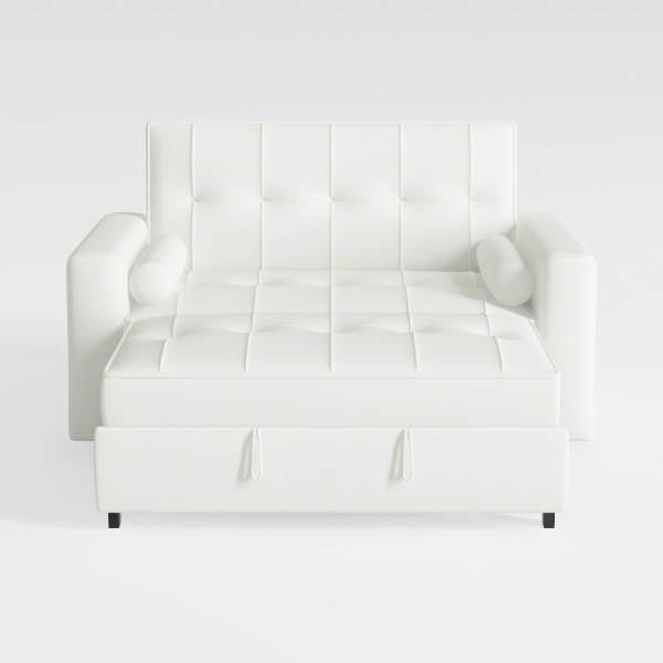Beyond its aesthetic appeal, functionality takes precedence: the generous seat depth ensures all-day comfort, while the seamless transition from sofa to bed (when needed) caters to unexpected guests. Hidden storage drawers beneath the frame offer discreet stowage for linens or essentials, making it a versatile choice for those seeking style and utility in one.