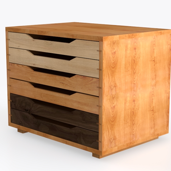Inspired by nature's varied wood textures, this multi-drawer cabinet features smooth, polished surfaces with distinct grain patterns in light, warm, and rich dark tones, creating a harmonious, organic visual flow. It suits minimalist bedrooms or cozy living rooms, pairing beautifully with linen bedding or neutral sofas. Multiple deep drawers offer ample storage, blending functionality and elegant design seamlessly.